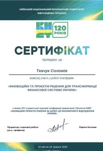 У межах курсу «Публічні фінанси» кафедри фінансів ім. С. І. Юрія для посилення наукової компоненти освітнього процесу студенти 3 курсу Кураш Вікторія, Саляк Ярина та Ткачук Соломія взяли участь у роботі 93-ї студентської наукової конференції, присвяченої 120-річчю Київського національного економічного університету «Інноваційні проєктні рішення на шляху до економічного відродження України» організованої кафедрою фінансів ім. Віктора Федосова КНЕУ.